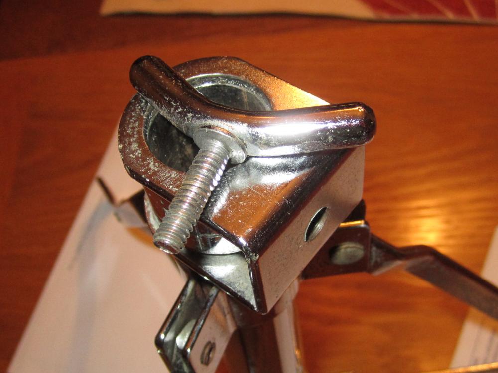 Came into possession of a really nice Rogers 60s era (I believe) swan-legged Swivomatic snare stand, but it is missing the specialized wing nut that tightens the tripod stand. The wing nut in the picture is of a SMALLER threaded wing nut I removed from the snare basket to use as an example of the styling of the nut. Thanks for your help. Dean
