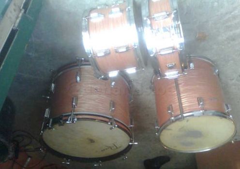 Nice. AU$2000 US$2012. Not cheap, but not bad for Europe. Do you know what the snare is? or the cymbals? Pictures are . . . not clear! What about that Dutch bloke at vintagedrumjunkies.com? You'd think he'd be all over these like - a vintage drum junkie on wine red ripple ;-)