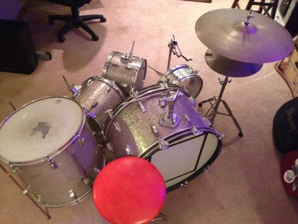 drums are in good shape, only mod on the kit is the bass drum mount and the ludwig tom mounts
