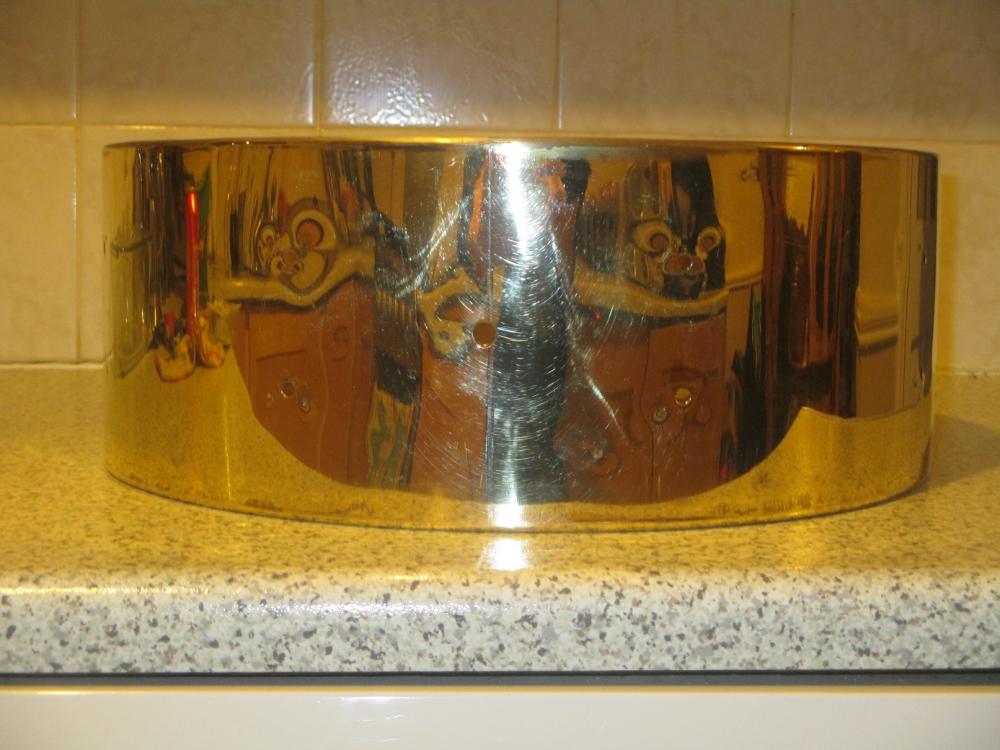 Here's a drum I picked up a while back. The shell had a lot of tarnish on it when it came to me, but I polished it up to reveal the brass shell. It was a lot of elbow grease, but worth it in the end.