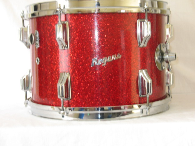 9x13 red glass with speckled gray interior and Dayton tag. The wrap has a few minor blemishes and there is some light pitting on the hardware but overall the drum is in excellent condition. $150+shipping