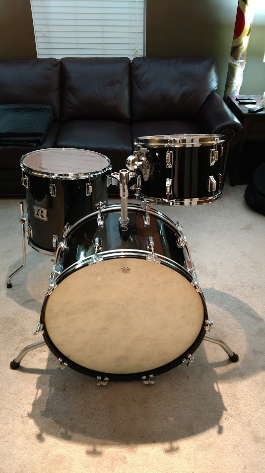Overall very good condition. XP-8 eight ply maple shell with natural interior. Chrome pieces are in excellent shape, with some minor pitting here and there. Wrap is tight at the seam and is in very good condition, with a few scuffs and dings. All original equipment, with the exception of the rubber feet on the legs, which are exactly like the originals (they were missing when I acquired the kit). No extra holes. Original Rogers batter head, unbranded clear Ambassador weight reso head. There is a little "air bubble" at the bottom of the badge along with some black residue that won't come off (see photo in reply below).