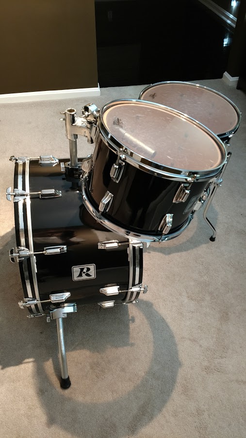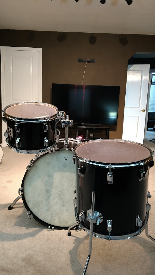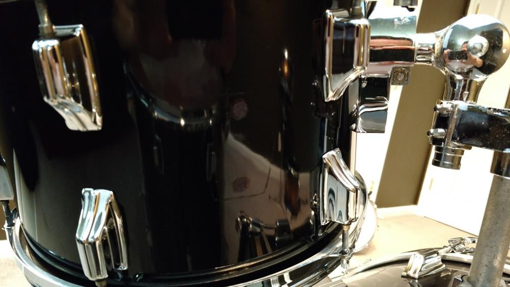 Overall very good shape. Five ply maple shell with re-rings and gray interior. All original equipment, with the exception of a hex head screw for the tom holder memory lock (key operated screw was missing). No extra holes.
