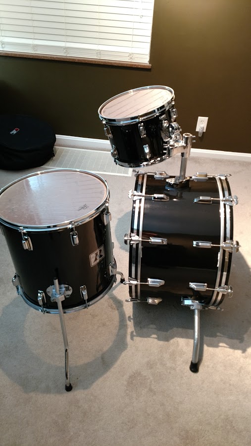 This is a nice looking and nice playing kit. 9" x 13", 16" x 16", 14" x 24". The toms are 8 ply with natural interiors (XP-8) and the bass drum is 5 ply with re-rings and gray interior, but all have the same lugs and hardware fittings. All shells are true and in round. Overall condition is very good, I would say 8+ out of 10. I'll go into detail about each drum below: