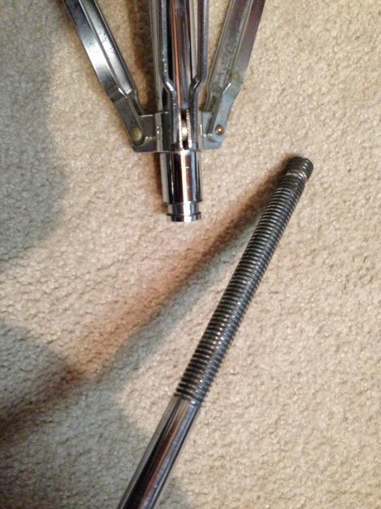 I recently picked up a Rogers Samson Throne with a kit but it is missing the clamp that receives the threaded spindle. Does anyone have one of these? How does it attach to the stand base?