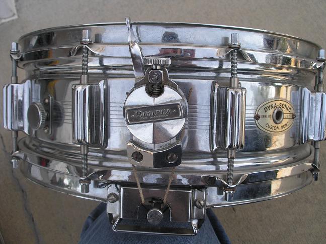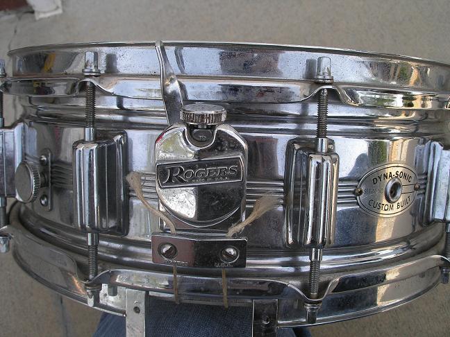 Just picked up these two Rogers snares. They haven't been cleaned yet, but can you help me date these two Rogers Dynasonic snare drums. The first snare pictured has you can see...has 4 deeper lines that run around it. The snare throw-off looks different than the other, the Dynasonic badge serial #(21618).