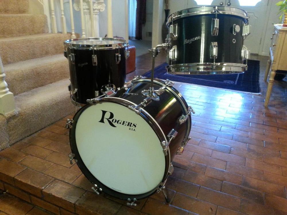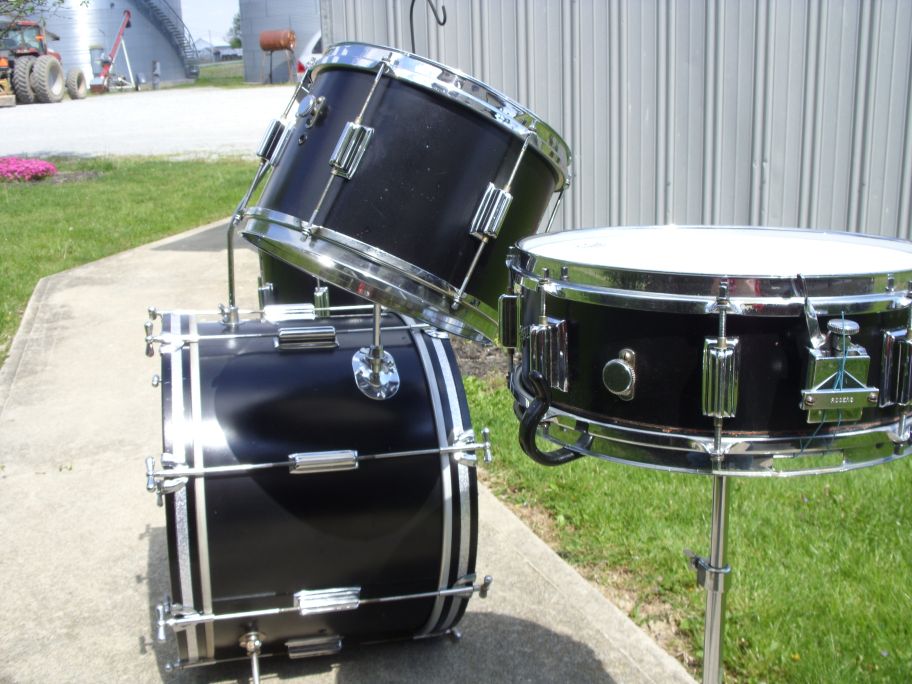 This is a mid 1960s Rogers Tower model drum kit. Catalog color Solid Jet Black Pearl. 4-Piece all matching kit, with an actual Tower model snare. 12x8, 14x14, 20x14, 14x5 sizes.
