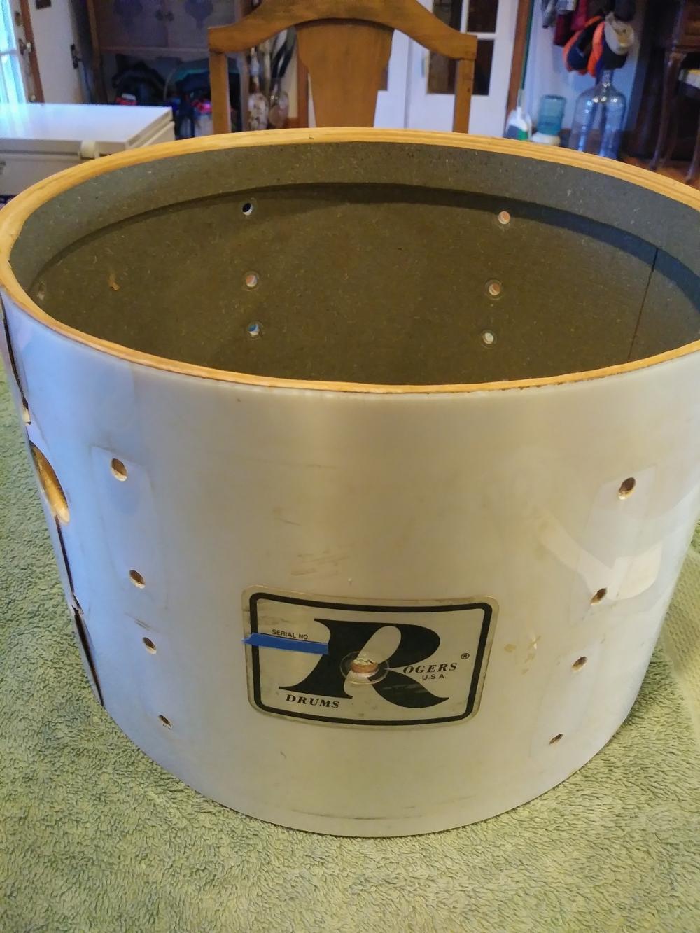 It's an interesting set. 22" BD, 10" and 15"(!) toms are clearly XP-8 drums, but started out as concert toms. They have the Big R with no serial #. At some point someone drilled holes for the bottom set of lugs to make them into conventional toms. When they did it, though, some of the inner ply got chipped off. I'll be needing to fill those places in and would like advice on what to use. Also coming across some small gaps in the outer plies, so I'll plan on using the same stuff to fill those in before refinishing.