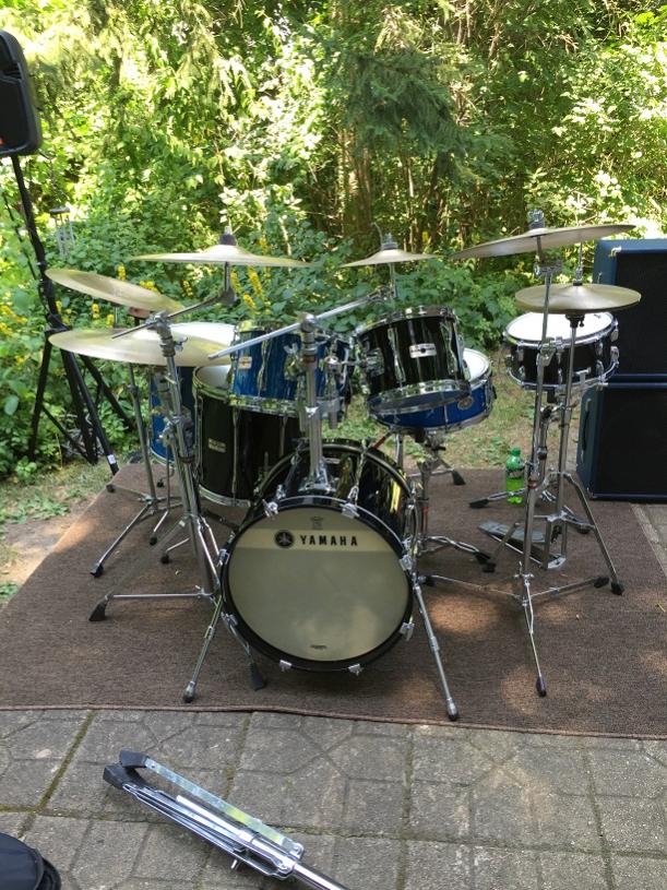 I mixed my blue and black drums for one gig. It was pretty cool since it’s black n blue. I wanted/needed a compact kit but since this was an open situation I needed to provide something more diverse than a 4-piece kit.
