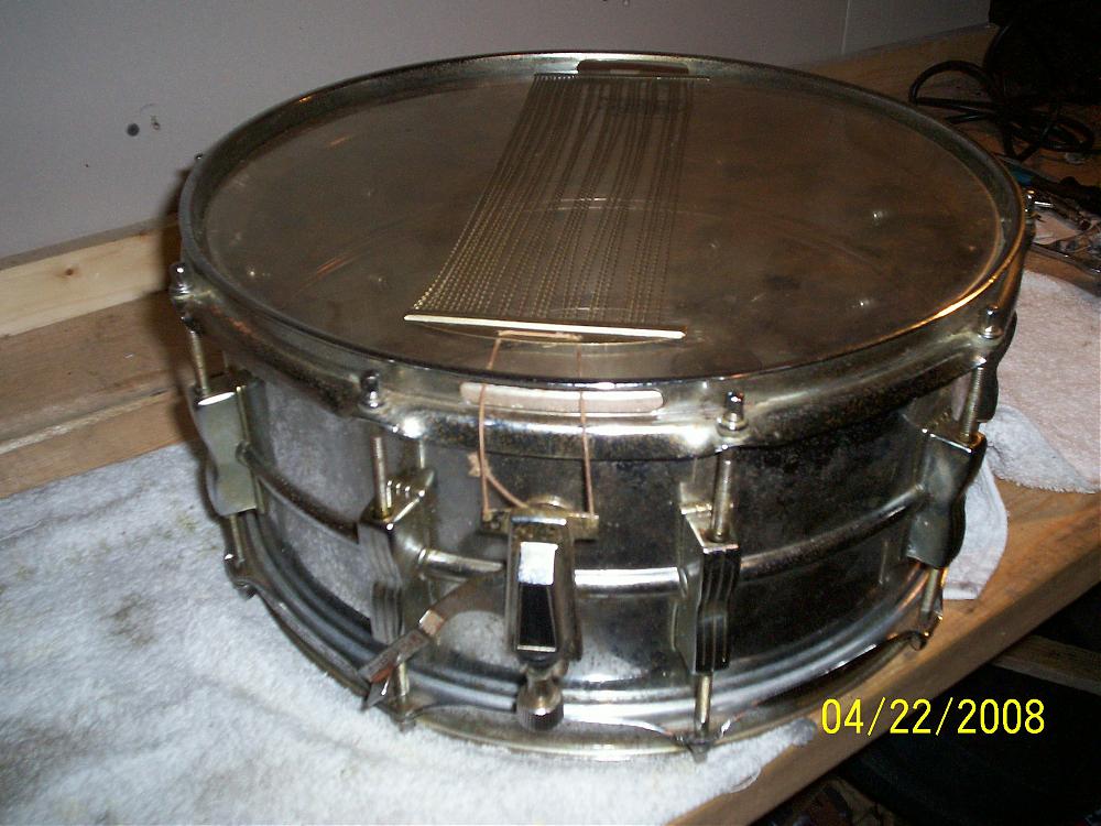 Slight snare buzz unless the tone control is just barely touching the batter head, which itself is an old 1960's Remo Ambassador with which I had to use epoxy glue to re-glue the mylar head back into the aluminum hoop after the original epoxy had aged and cracked, letting the mylar pull right out of the hoop.