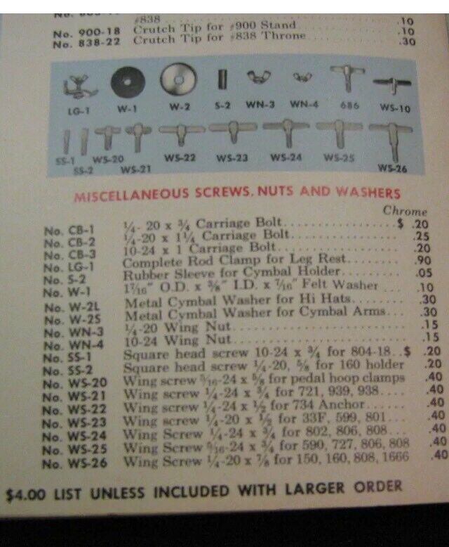 Thanks for adding the picture of the hi hat stand you have. This is the Dynamo, #806. I thought you were referring to the 804 flush base stand, which is accounted for my confusion as to what you needed. Also, thanks for the catalog picture. Turns out that I didn't look at my later 70's catalog that shows the page you provided.