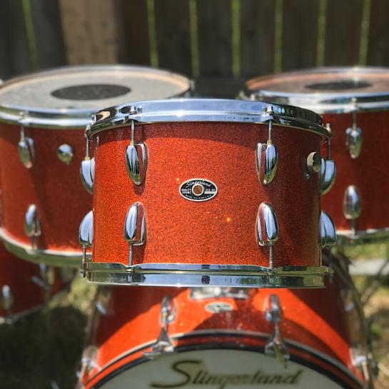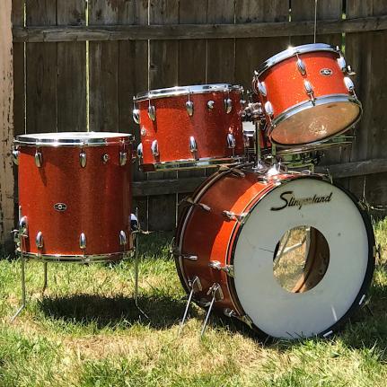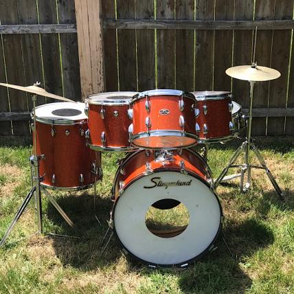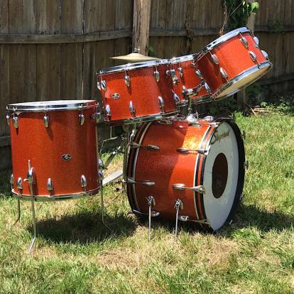 Up for sale is a very rare Slingerland Avante in sparkling orange pearl! This is a sale for the shells alone. Cymbals and stands not included. This is one of the rarest finishes that Slingerland offered in the 70’s in a rare Avante sizes! Sizes are 12, 13, 14, 16, 22, and 14 snare. I have been able to track down very few pictures of the sparkling orange finish and have located 0 Avante styles. If you google Slingerland Avante sparkling orange pearl my kit comes up as the only one. Not saying it is the only one but there can’t be many. The kit is in incredible condition with 0 wrap imperfections or fading to speak of and very minor pitting to the chrome. Everything on the kit is original, in the pictures I have a vintage ludwig hoop of the 12 however since the photo it’s been replaced with an original Slingerland chrome over steel that perfectly matches the rest. Please reach out to me with any questions of inquiries for more information!