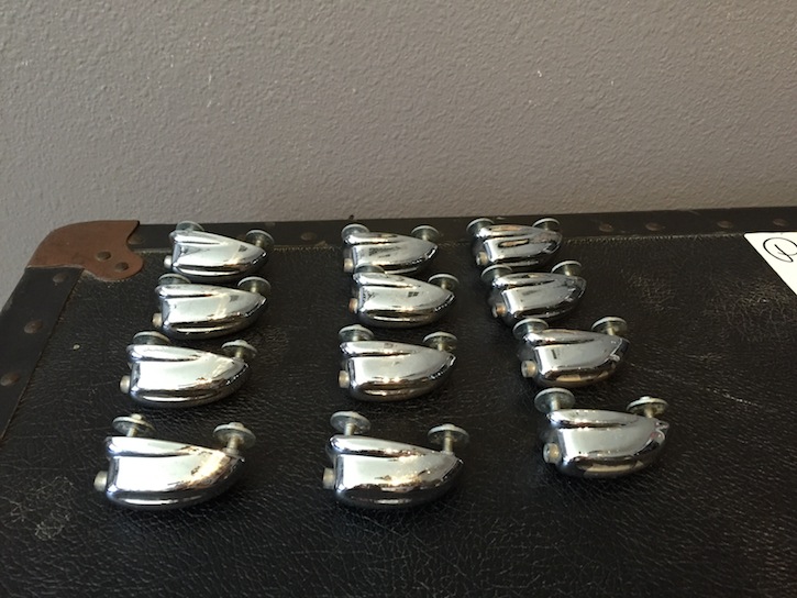 Today I have 12 Slingerland small Sound King lugs for sale. They are in pretty good shape, with some light scratches and 2 of them are missing a little chrome. Great for a player kit.