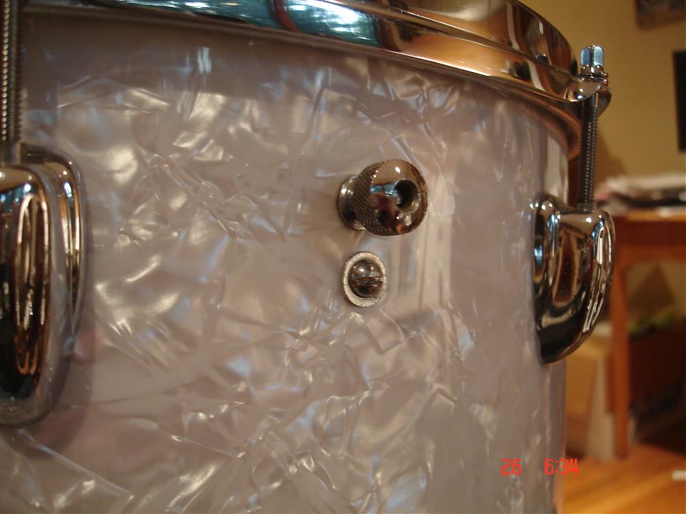 Vintage white pearl wrap from jamin sams for a 16 x18 floor tom shell.