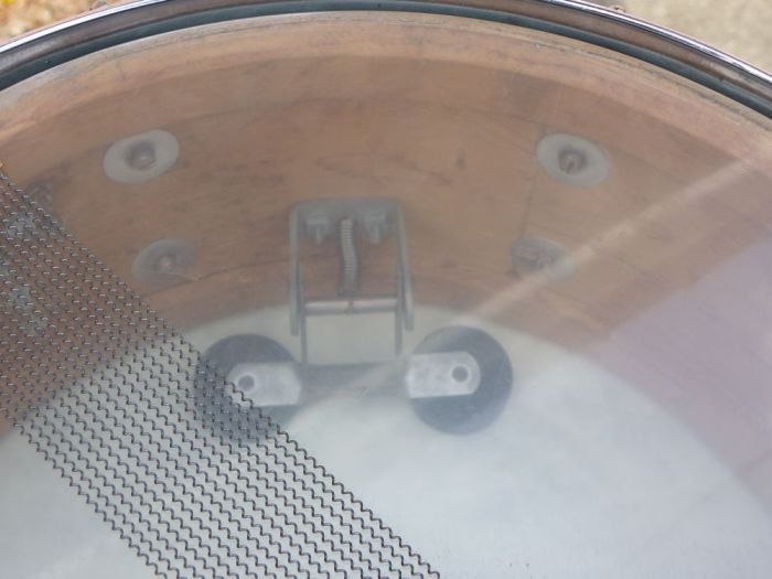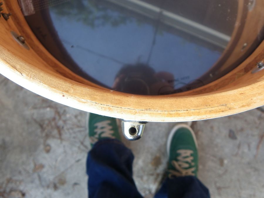 That's the snare that was on ebay right? If i recall right the listing did not say that the drum strainer and butt have been re-worked.Now onto the drum the right strainer that should be on the drum was the Rapid strainer see photo #3 you posted the hole with out te screw in it was for the Rapid strainer and the one that is were the 3 point strainer is would be the top hole for the Rapid.The 4 holes that have the screws ete in them could have been the 4 point S/L strainer or a 60's Gretsch strainer..I would check the butt side of the drum i think that the 6 hole butt was addded to the drum to check this see if the two other holes on each side were added to the drum.Also look under the butt when you remove it and see if you can see the outline of a 2 hole butt on the plastic cover..I would also check the edges of the drum and see if they have been re-cut or you can post some photos i will help you on that.Also look around the grommet on the inside of the drum {or again post photos] the grommet does not look right be me..If the drum is a rewrappped drum you will be able to tell by looking at the grommet....Some sellers on Ebay pull alot of S*** on their listings just to sell a drum ....Mikey