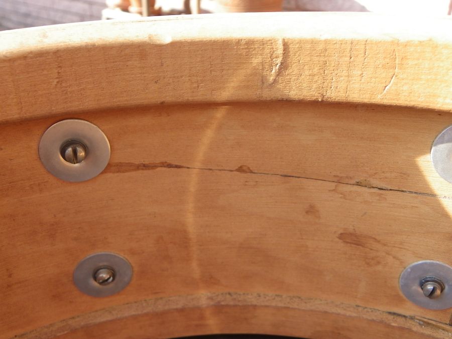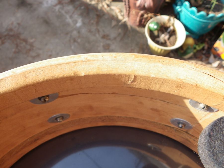 Here are some shots of the edges. Not sure if you can tell much from them. It has a few nicks and looks like the re-ring is splitting from the shell a little in a couple places. Not sure if the split on the shell is a split, a weird grain, or a crack. Let me know what you think....Not Mikey.
