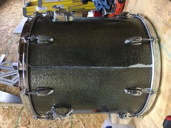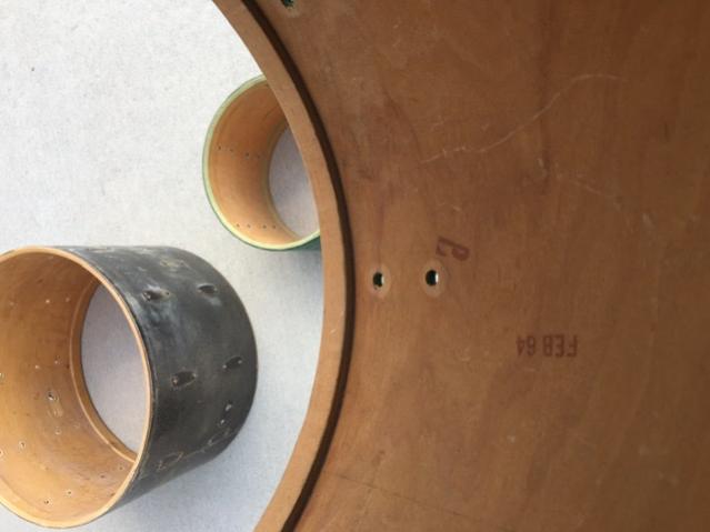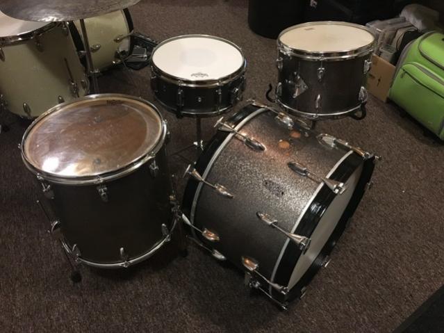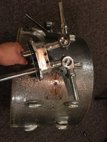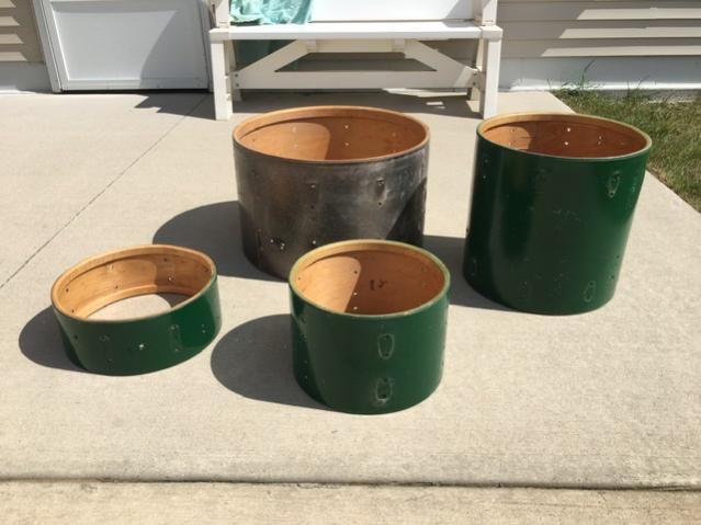 Hello friends! It’s been a long time since I’ve posted here. Some time ago I picked up a 60’s Slingerland kit that someone had painted green. 13”, 16”, and snare drum (14”) all painted green. ��. They also put a 80’s or 90’s Pearl double mount on the bass drum. They did not paint the bass drum green however. I wasn’t sure if the bass drum was faded merlot or darkened champagne. After more research I realized it was smoky pearl. Good news was that even though the wrap on the bass drum was pulling away from the shell at the seam, the rest of the toms and snare were also smoky pearl. I was able to remove the green paint with a lot of success. Please see the pics below and I will continue with my story of this smoky pearl kit.
