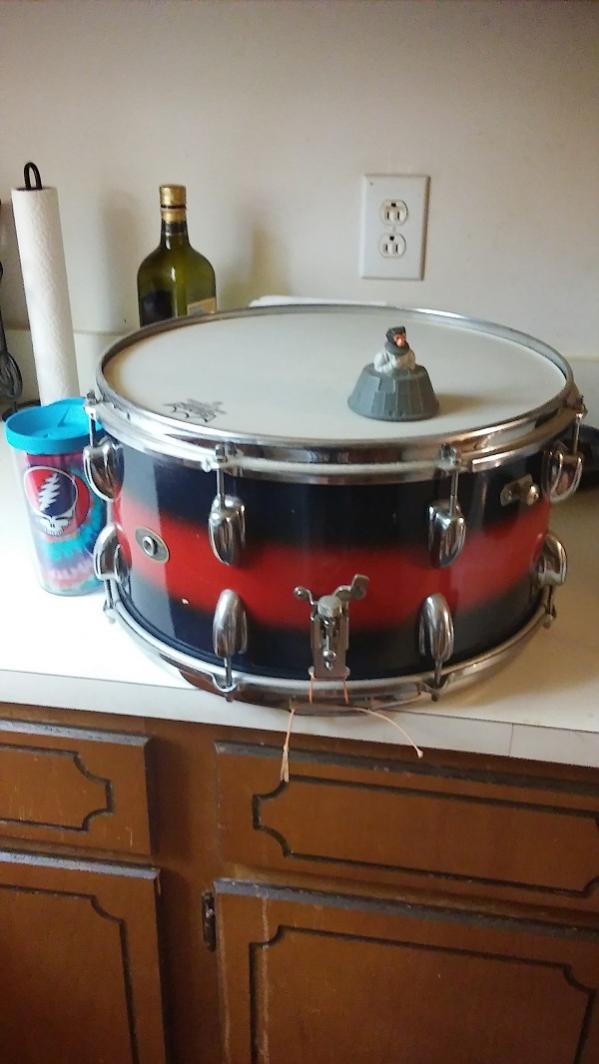 This is a 1958 or 59 Slingerland concert king drum 7x15" I recently picked up. Im doing an extensive restore on this drum and will need a strainer. The original strainer was probably called a radio king strainer, I need a strainer to replace the one that came with the drum. If anyone has a Slingerland strainer that will work please let me know. I dont think a zoomatic strainer would be correct but not out of the question.