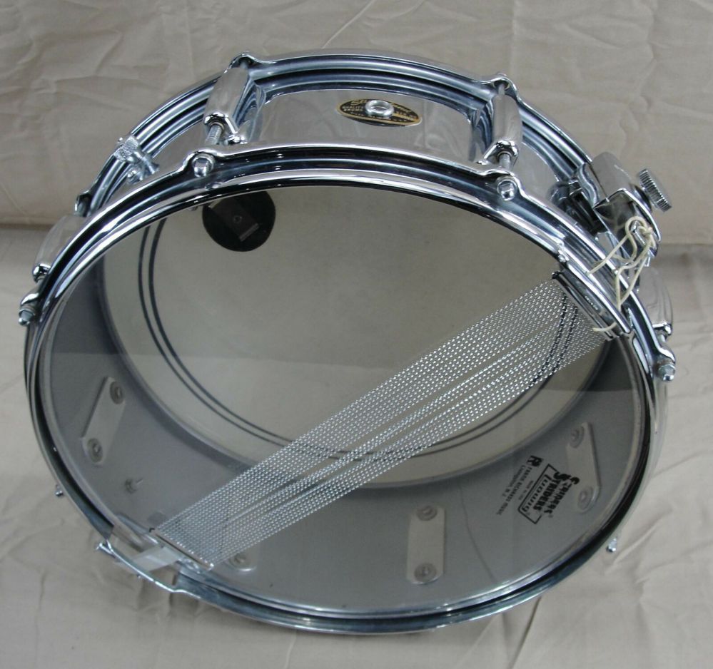 I recently received a first generation, 1965, Slingerland Gene Krupa Sound King snare drum. These are characterized by the smooth shell, rather than having the three (3) etched lines around the middle of the shell that we are all used to seeing. I recognized that this drum was very clean and all original, except for the heads and snare wires. I could tell from some of the pictures that the original rubber washer between the strainer knob and "tombstone" body was missing, due to disintegration over the decades!
