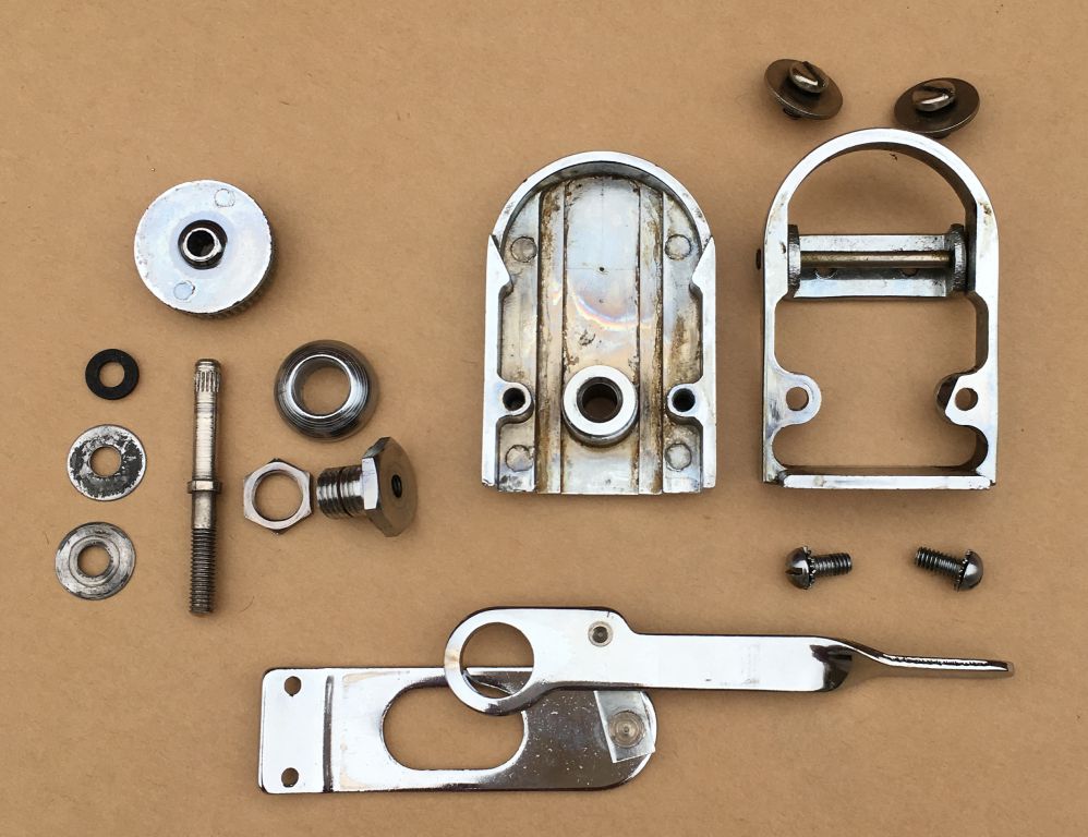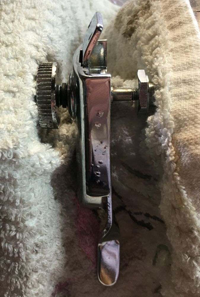 The splines on the shaft and inside the knob are in excellent condition! My plan is to reattach the knob with JB Weld "kwikweld" and cross my fingers! You'll notice in the pictures a small black washer, just above the two original compression washers. That's a perfect size fiber washer that will be installed on the shaft between the knob and "tombstone" casting to eliminate play and make the use of a spring between the shell and the Zoomatic unecessary! I'll report back on how this repair turns out!