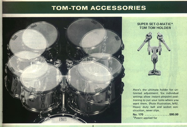 I think your right on the SSOM timeframe. I bought my new Slingerlands in 74 from Frank Ippolito's PPC shop in NYC. We spent some time on tom mounts as I wanted Rogers Swivo. They didn't carry them but the short story is the SOM is what I used to start. Drums went thru a few configs later with Camco mounts.