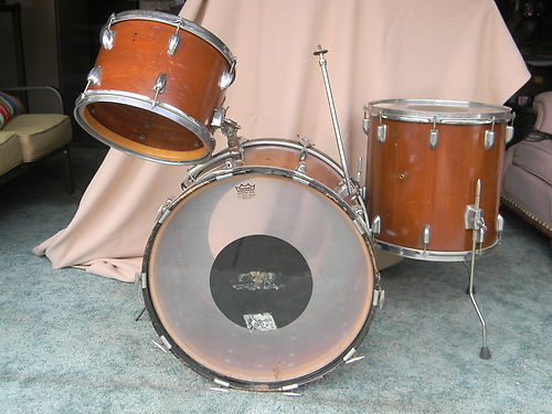 Bought this kit on E-Bay as a 62 Slingerland Maple kit. The wrap had been removed and the drums stained and varnished. The bass and tom are indeed Slingerlands from 1962 but the floor tom is Japanese from who knows when. I did get a partial refund. Tama leg brackets, heads are worthless, hardware and chrome are good. Does this have any value cause I don't want it? Seems like the hardware might be worth more than the shell.