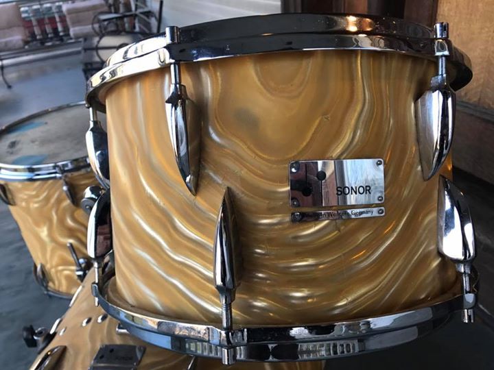 For Sale: 1960s Sonor Teardrop in Gold Satin Flame. This is such a rad kit - factory matched and original heads top and bottom nice the snare batter head. Some cracking as is the norm for these kits, but the interiors and edges are in fantastic shape, and the hardware here is original and complete minus a couple interior screws and a missing tightening bolt on the bass drum. These are 6-ply beech shells and sound wonderful. Sizes are 20x14, 13x9, and 16x16 with matching 14x5 snare. $1100 plus ship. Email [email]hawthornedrumshoppe@gmail.com[/email] if interested. SOLD
