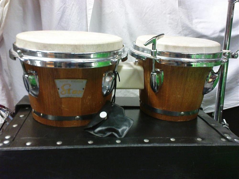Hi all,as you also could see in my other threads, I´ve been on the hunt a lot lately and got me some more, let´s say "Starabilia" items, as there are a nice pair of Bongos and a 14" Star Stamped Crash-Cymbal.The Bongos came with the original key in it´s bag, and the overall condition they´re in is nice. Don´t know if they´re 100% original, but to me they seem to be.The cymbal sounds way better than I expected (or should I say: as I feared?:D). So I decided to integrate it in the set of Paiste cymbals that I purchased - and now use - in combination with my Grey-Shimmer-Stars. Fits perfectly!