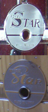 Size 14" x 5", cob, with parallel strainer, complete and in good to excellent condition. I know this heavy metal shell snare from the old STAR-catalog I call my own. But the badge on this snare shows the "Royal Star" logo in black. I know the "Royal Star" round badge in silver (produced ca. 1970 - 72), but this one appears to be still older? Is this snare = badge from the beginning of the short Star aera: 1965?