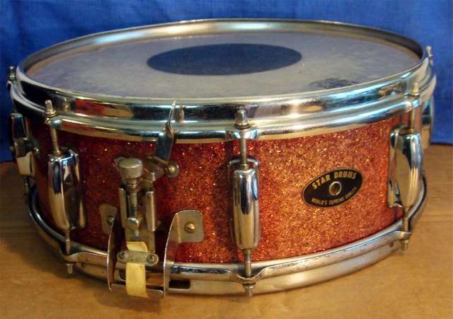Tommyp! ... Thanks for the compliments! Current count is 16 MIJ snare drums, all from the 60's and very early 70's. My oldest is a 1961 Star RK copy. The catalog even called the hoops "Rim-Shots". Includes 3-point strainer, extended bridges, dual-pad muffler and Slingerland-style lugs. Only appeared in one catalog, probably because Slingerland found out about it and threatened to sue!