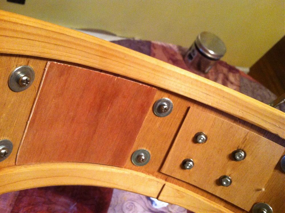 Looks great, and very resourceful. I patched soft and enlarged bass spur holes with an extra ply of luan. I didn't have a wood steamer, though. I imagine it made the clamping and gluing process much easier. That WMP wrap looks like it's in really good shape.