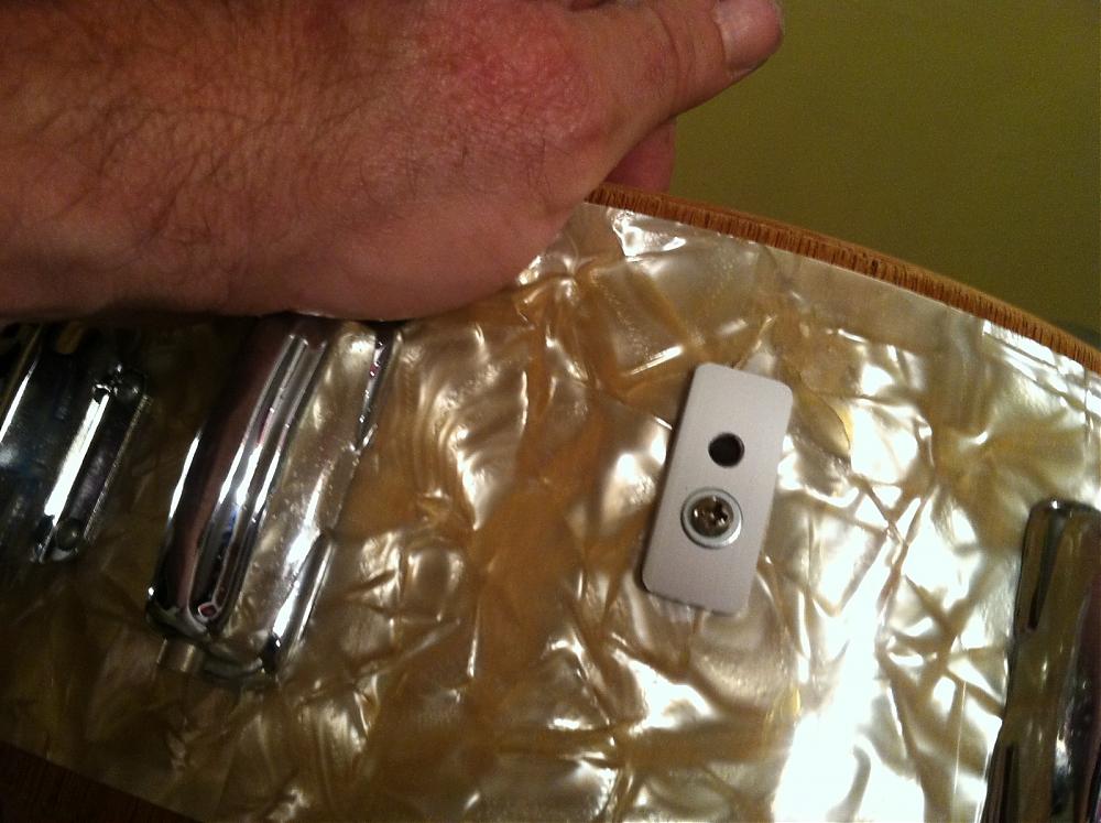 Started with the worst one, the snare. It had the most rust, missing parts, muffler knob pulled right through shell etc. The shell had factory re-inforcing pieces of wood where there was anything mounted through the shell. except where the muffler was. Found some 1/8" luan at work, laid it on top of a steam humidifier we also had at work, got it nice and soft so it would conform to the shell, glued, clamped, Wallah!! pieced together muffler but had to make a plate for the outside of the shell. Very happy with the outcome. Still have to pick up some snare wires and see how it sounds...Rich.