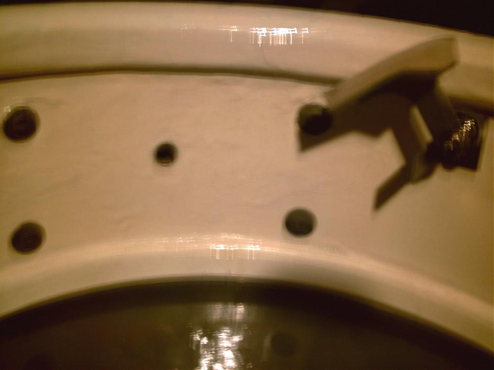 A section of the drum has a thicker area of paint applied to it. The paint seems to be an exact match of the original so I am not sure if this was done in the factory and someone got careless, or if it is a modification. What concerns me is that there is little sliver on the interior of the shell, made from a hole from the outside of the shell, that has some of this thicker paint specifically around it. I would venture to guess this is not a coincidence so the drum may have been modified. I have no idea why someone would apply a coat of paint in a certain section but that is what it seems like.