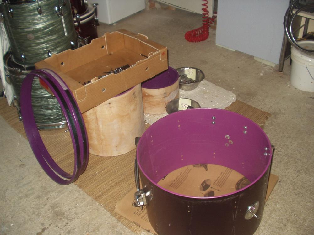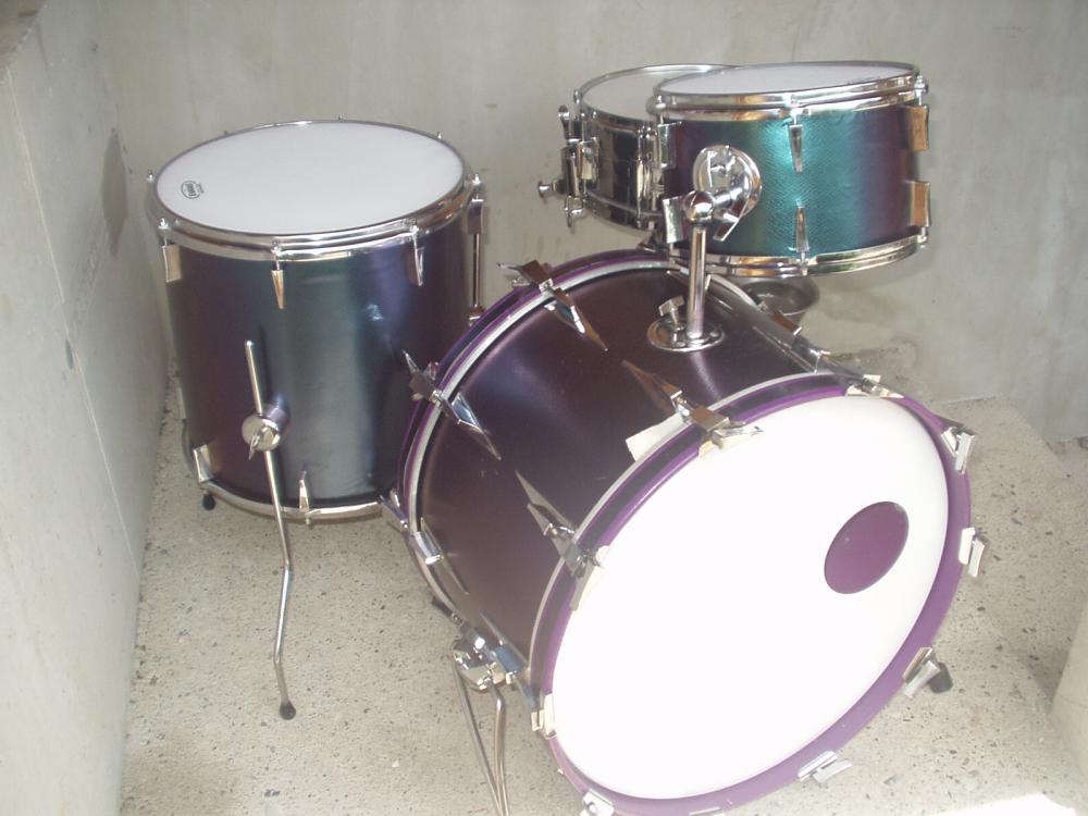 just finished this Tacton Drumset. Got it cheap over ebay. On the first pic you see the way i got it. The former owner made some awful restoration with a cheap self glueing wrap. Did not look very nice.