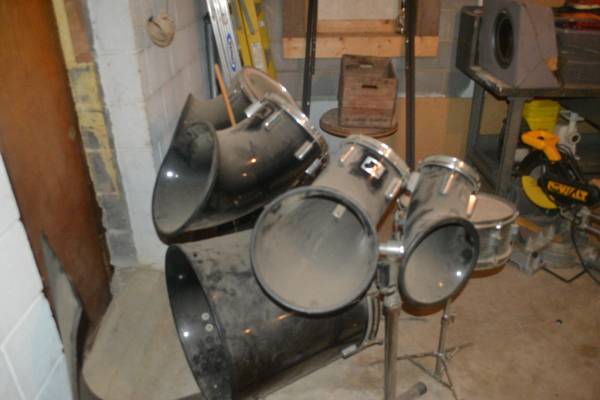 The pics that were posted on CL were of such poor quality that it got my hopes up that maybe, just maybe, there was a pristine kit underneath that heavy layer of dust...The perfect Corvette in a barn story. When I saw it in person I was a bit deflated by how filthy nasty and scratched up it was. I think the seller sensed my interest waning as I looked it over, because he eventually offered to throw in a second snare for the agreed price. It is a Rogers R 380, also pretty grubby, but complete and original. I'm sure I'll be asking a few questions about that eventually. In the end, the seller was thrilled because he "paid a co-worker only $75 for the kit sometime back in the 90's," and although I provided him with the thrill of turning a 1000% profit, I think I still did OK.