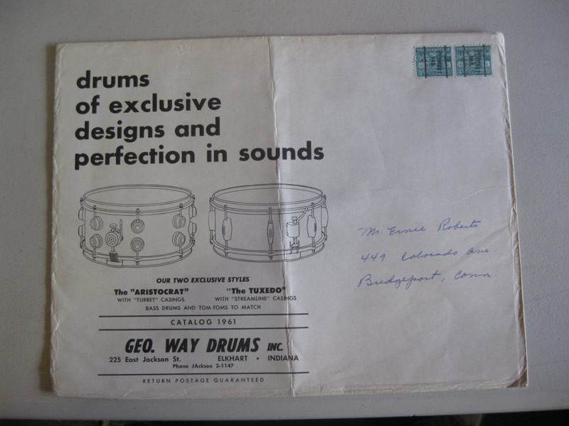 The two snare drums featured on the envelope for the new 1961 George Way catalog.