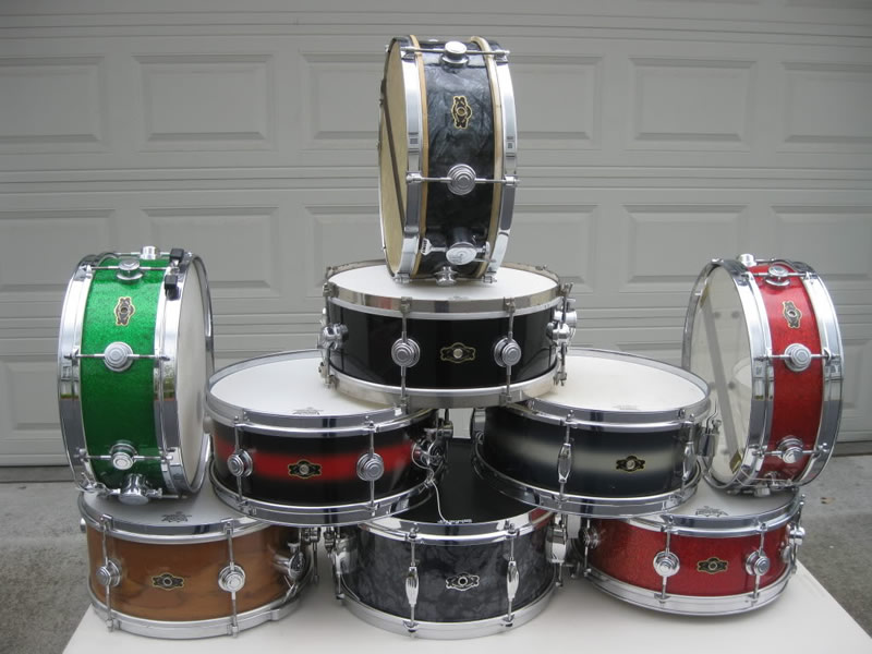 Here is my George Way snare drum collection minus the new 6.5x14. The 6.5x14 BDP Tuxedo lug in the center on the bottom row is a new Dunnett George Way snare, all others are originals.
