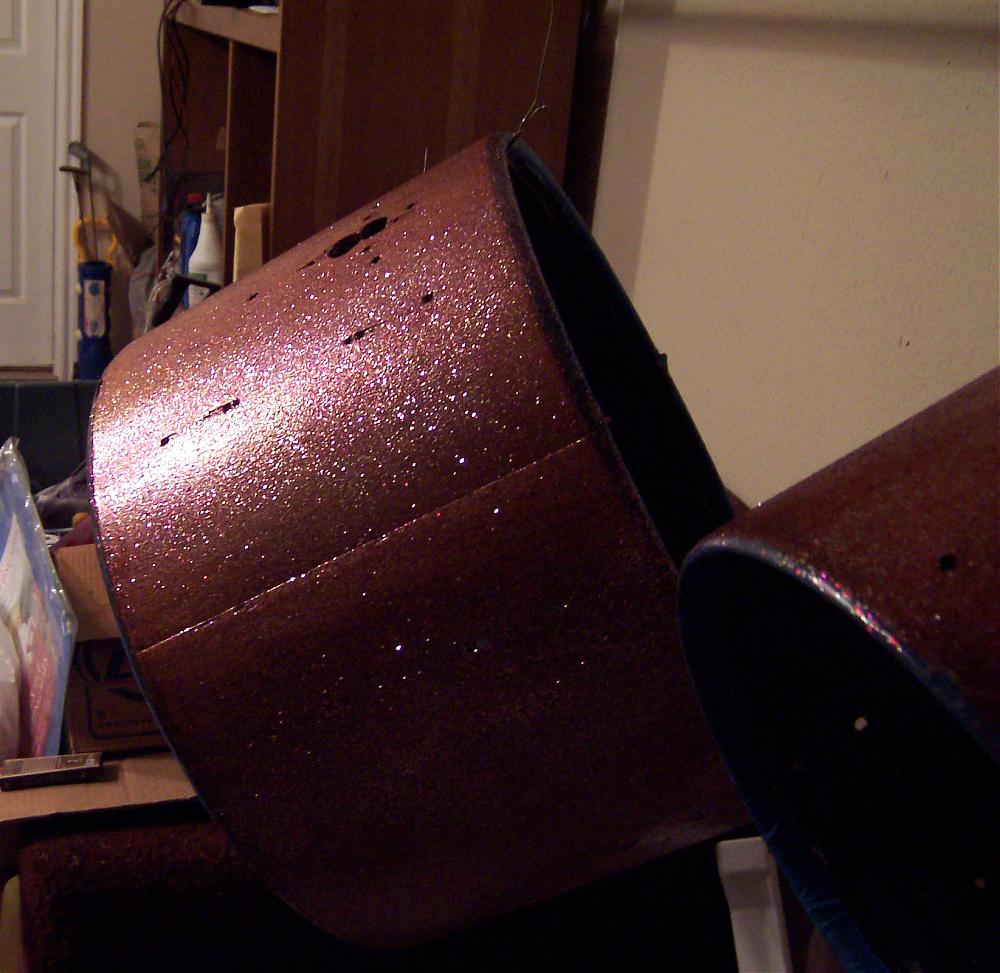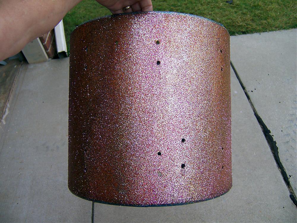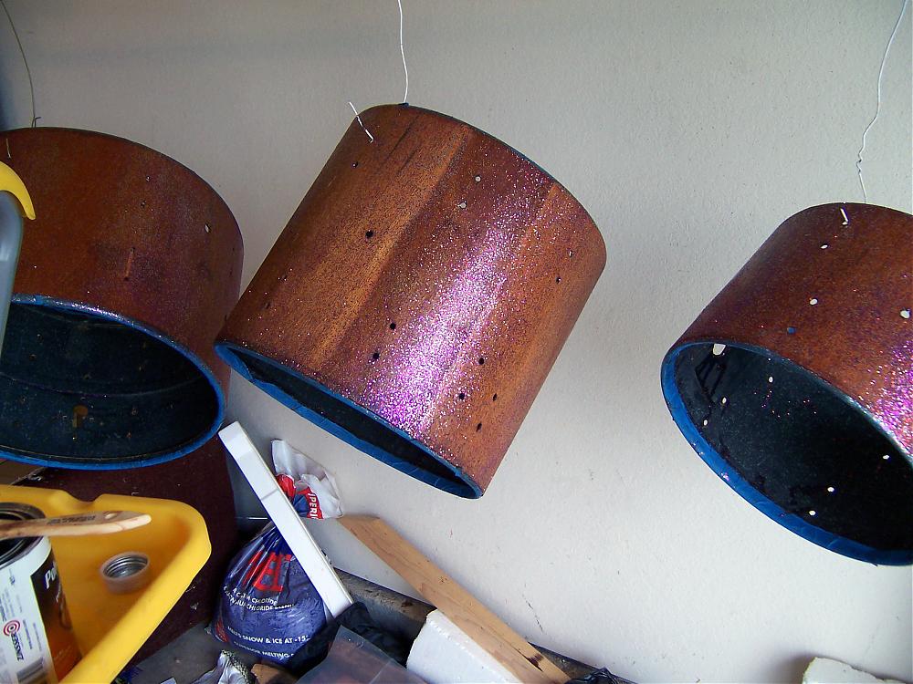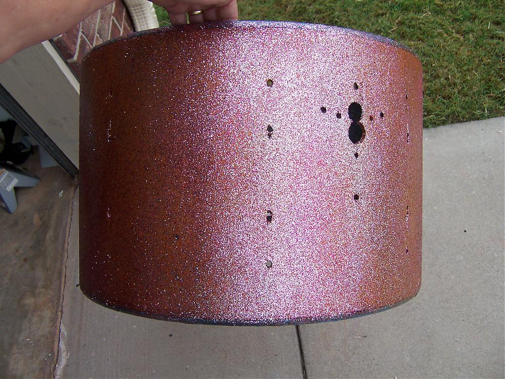 Second coat of poly with Pink sparkle added. I ran out half way around the floor tom, so Monday I get another bottle of glitter. These are really starting to take on some life.You get some of the wood grain, then when you change angles to the light, it sparkles. Next round gets a tiny touch of red and silver, or gold.