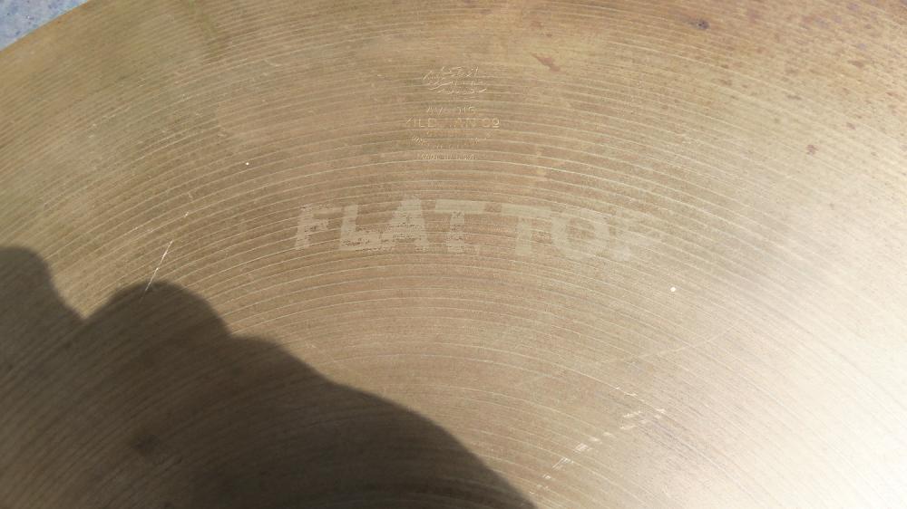 A 20" A.Zildjian with an 8" bell and stamped MEDIUM/FLAT TOP. Leave it to a redneck like ME to find something like this.