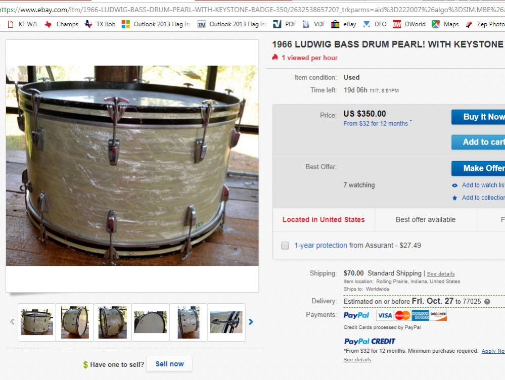 Currently looking for a 3-ply 24x14 Ludwig in champagne sparkle w/rail consolette and cymbal mount!