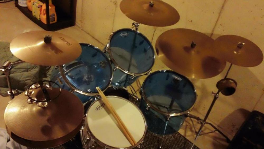 14” X 22” bass, 16” X 16” floor tom, 8” X 12” ride tom, 9” X 13” ride tom, 5” X 14” snare
