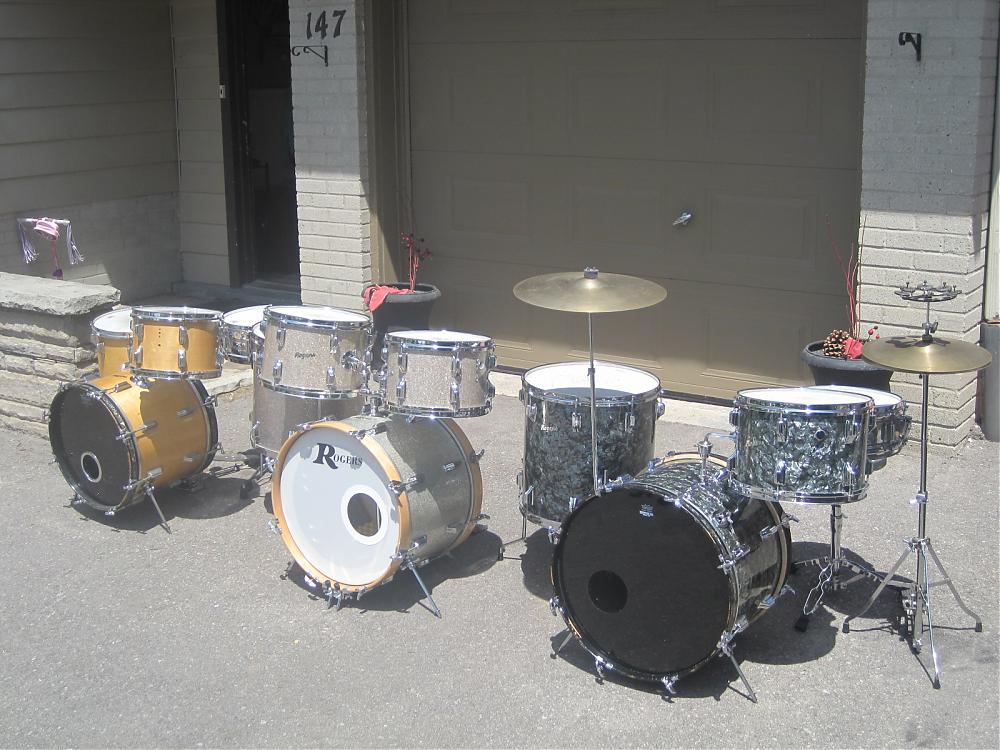 At home currently a DW kit is in my practice room. The gigs I do vary but usually a Vintage kit gets taken. Jazz club gigs get the Gretsch RB(used to be the Downbeats) and always my 50's "Dog Tag" Radioking snare. More funky gigs get the 70's Ludwig usually with the 400 or the COB Dyna.