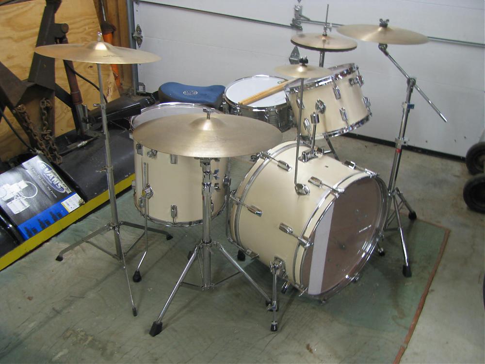 I can take more if it would help. It's a 5-piece, came with a cheap hi-hat, bass pedal and snare stand. The snare is missing a few pieces (I'll get it going just to hear it, but it's headed to the closet anyway).