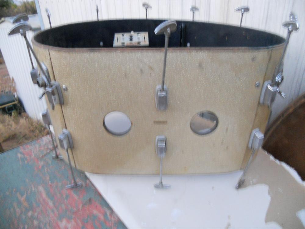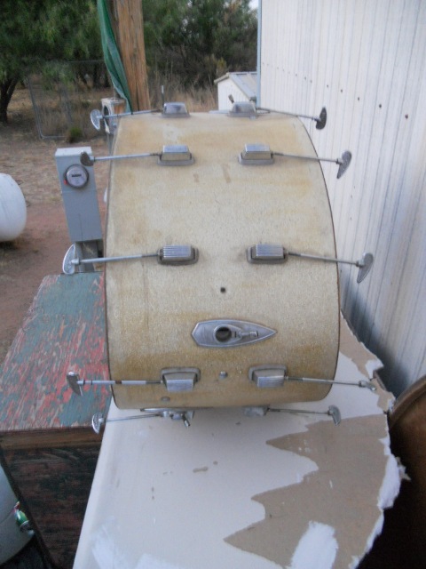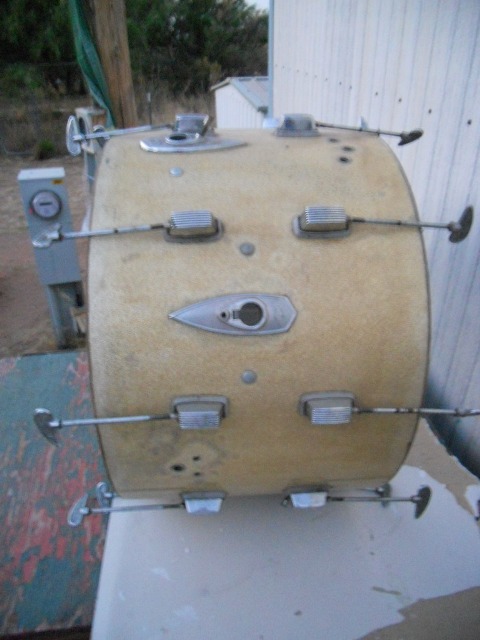I know absolutely nothing about this brand...but would like to get the right amount of money for it, so I need an objective opinion. The wrap is original and in good condition with some fading(looks like a pale gold color, really closer to a tan than gold). there's a lot of dust on it, but it will clean up OK. Value? I thought I'd get some opinions before posting on eBay. Of course you can PM me with serious offers. There might be some other drums to go with this, but probably not all of 'em, & as of now I only have this guy. Thanks,