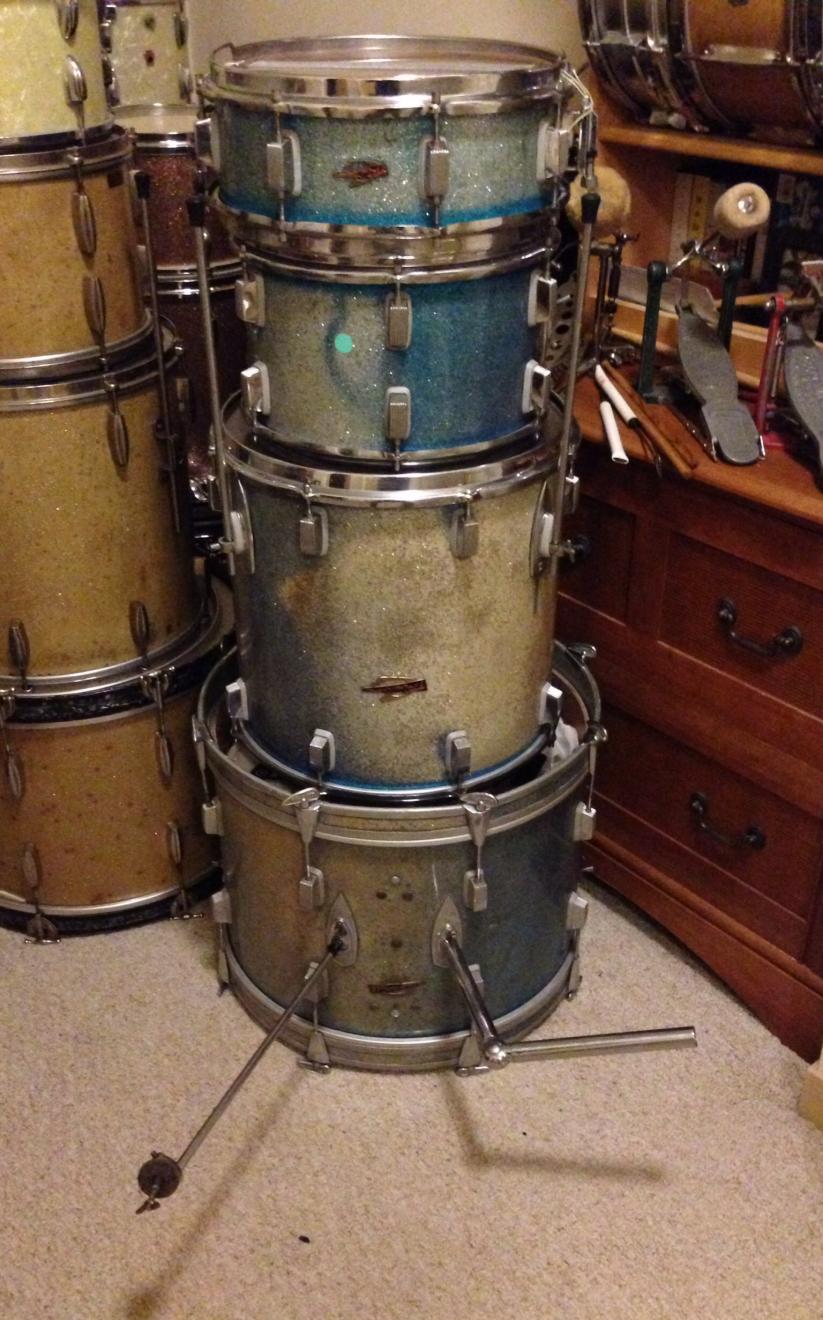 Looking for strainer/butt for a parallel action Luxus? Snare. Tank lugs--here's a pic of the kit--crazy faded aquamarine glass!