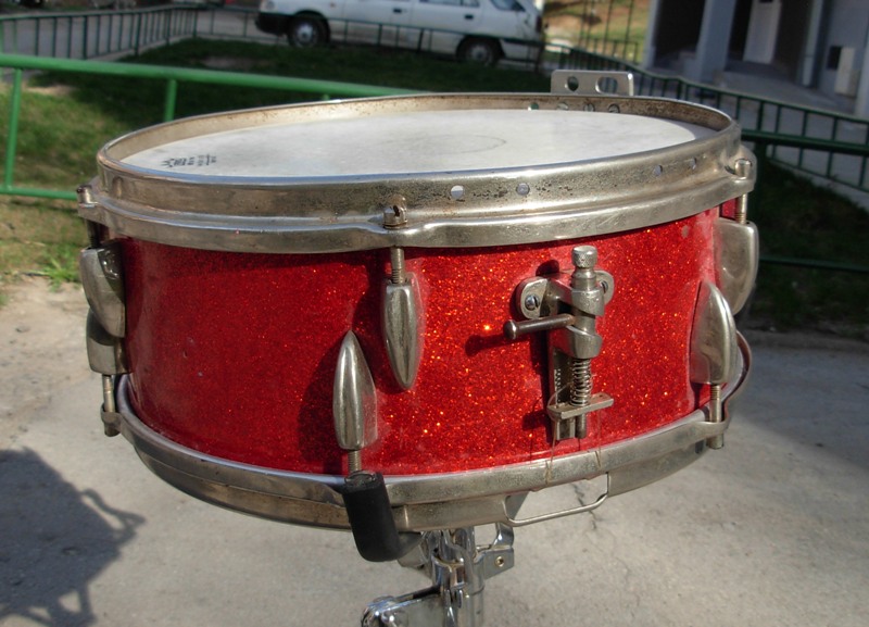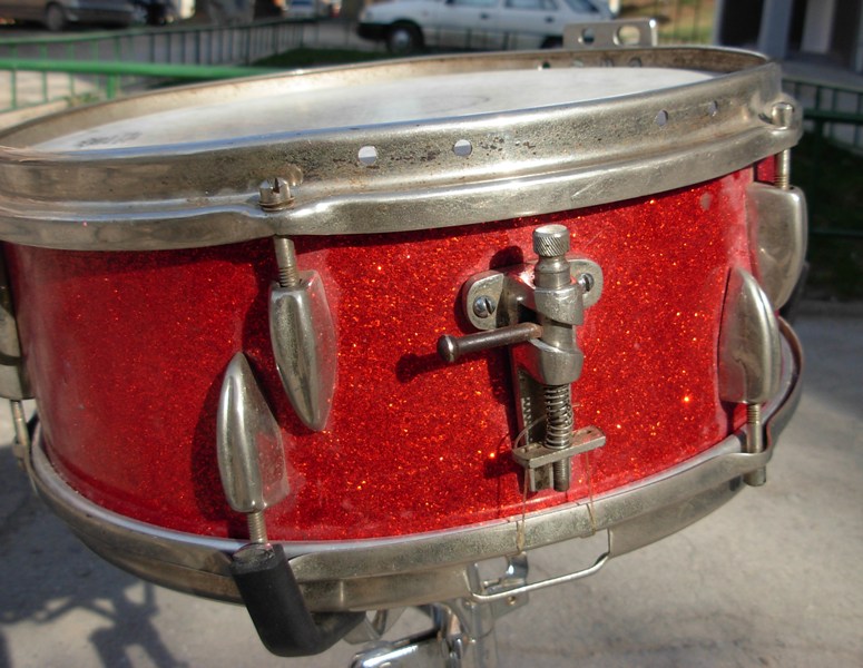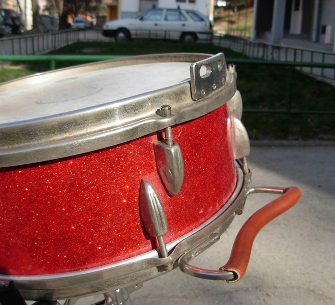 This snare just came to me today,and it is not cleaned yet.It is 13x5?,and have parts suggesting that this was field,marching snare drum.Have thin shell,re rings.What you think can it be?From knowledge gained here on the VDF I think it is Tromsa or Roxy,but something Made in Germany definitely