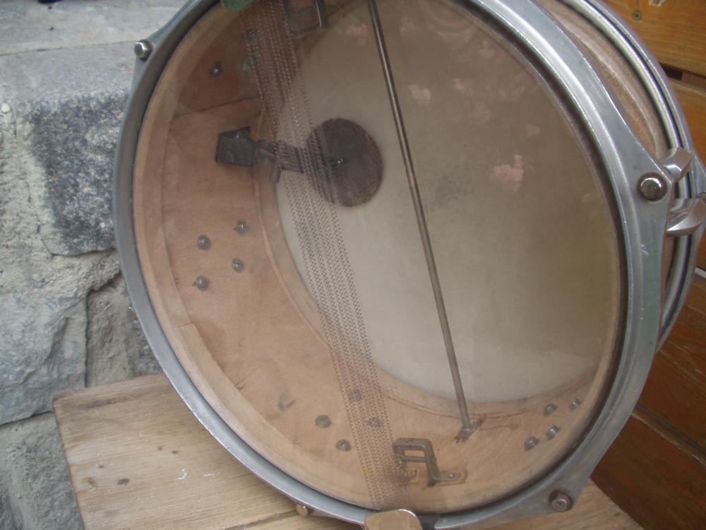 got that old snaredrum wich i believe is some eastern german product! Paralellmechanism works like new-the drum has an awesome sound! Time- i think it´s from the 50s!