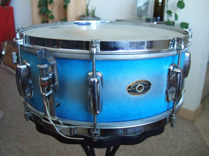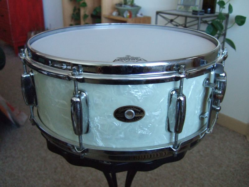 I picked up these two snare drums last weekend. The WMP is 100% original except for the batter head, and is date stamped OCT 1963. 3 Ply Mahog/Pop/Maple "Hollywood Ace".