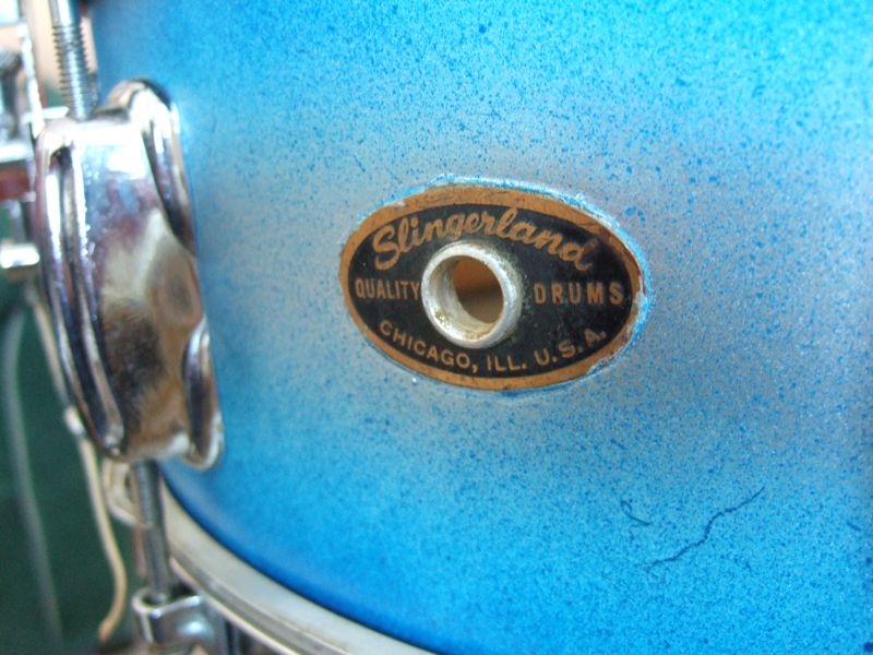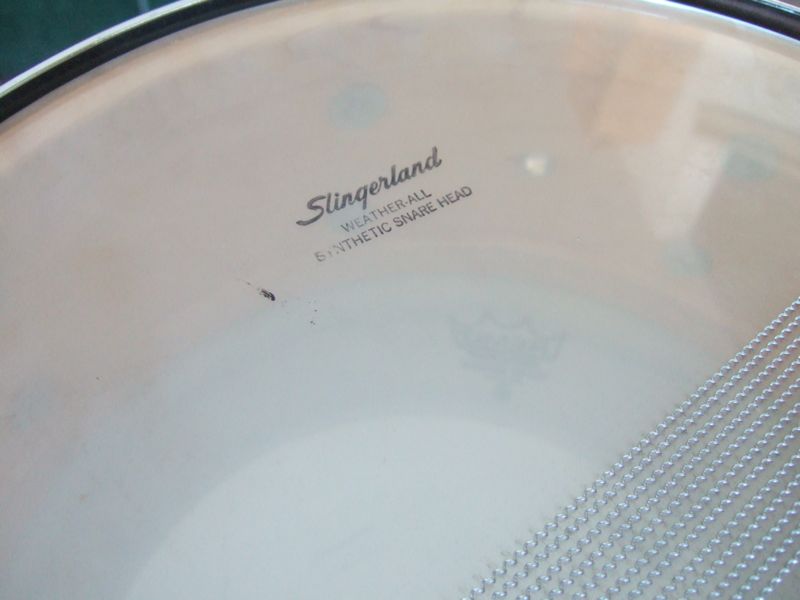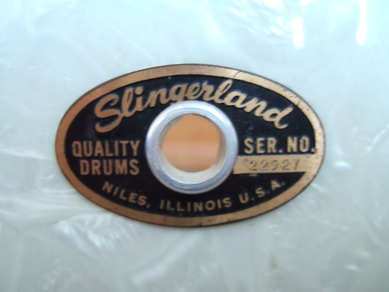The Student Model (of which I will be posting in the Restoration section of this site because I need some professional advice on how to fix it up) is date stamped FEB 1961 with a M or a W? next to that. I am assuming that the letter on the inside is an "M" and that it means "Mahogany" but maybe someone else can tell me for sure? The drum is 100% original...no extra holes...the only issue being that someone took it upon themselves to try to re paint the Duco finish after some chipping of the paint had occurred, and as you can see they FAILED miserably. It looks awful....and they even got some paint on the badge.