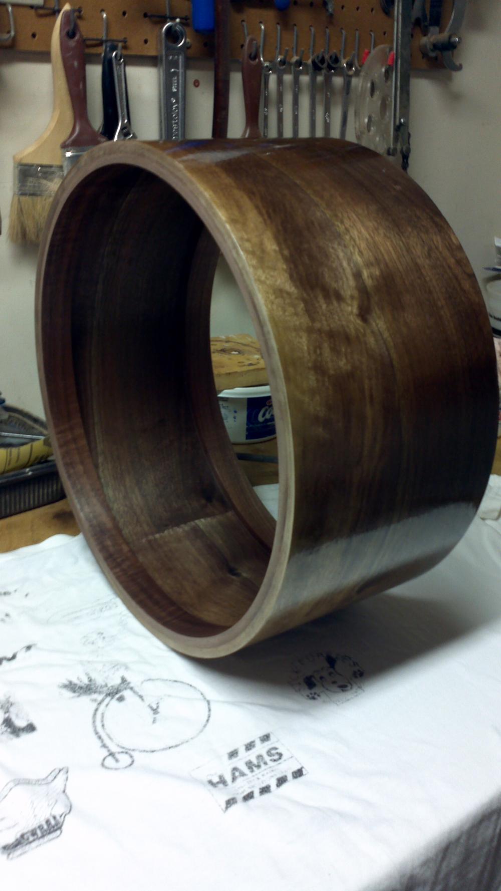 After the money was transferred, the communication started to become more spare. i did not get any response for my emails anymore. i just needed to know if he cuts edges/drills holes himself. still don't know. then, after about a month john responded, he was "really backed up with projects right now". i was just very happy to hear from him, so i decided to have my edges cut by Drumfoundry. I went ahead and payed for all the edges, drilling, because i thought the shells should be done soon.